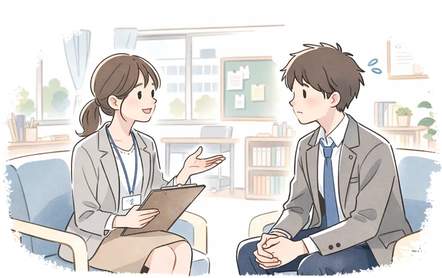 その結果、体がこわばる、声が出にくくなる、視線を避けてしまうなどの反応が起こります。この不安を避けるために、発表、雑談、食事の場面、電話応対などを避けるようになり、学校や職場での行動範囲が狭まってしまうことがあります。単なる性格の問題ではなく、生活に影響が出ている点が重要です。